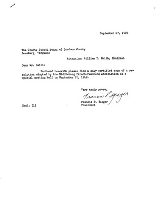 EWP 2-5B Yr 1926 May Airmont Wants to stay open White Petition from Airmont white school dated May 19, 1926 addressed to William T. Smith, trustee for Mount Gilead School District and the Loudoun County school board opposing the closure of Airmont school. This petition includes the names of petitioning parents and the number of students attending school and their ages and their distances from the school. Mr. R. Faulkner of Philomont, Virginia received a letter of receipt from the District superintendent . The Superintendent thanked Mr. Faulkner for the petition.