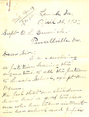 EWP 2-5-B Yr 1925 Purcellville Graded School wants Good Friday off