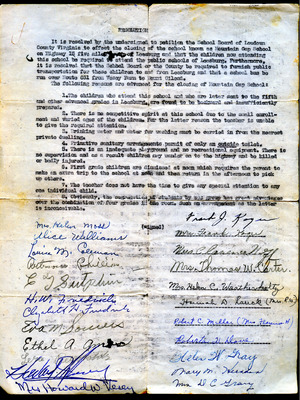 EWP 2-5-B Yr 1938 March 7 Waterford HS Protest Closing Petition of School patrons, citizens and taxpayers of Waterford, VA protesting the closing the Waterford High School in 1938. Detailed list of reasons why the school should not be closed. 70 signers.