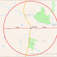 It's estimated that the maximum distance students would have walked to this school is 3 miles one way. The graphic shows the area from which students may have walked to this school.